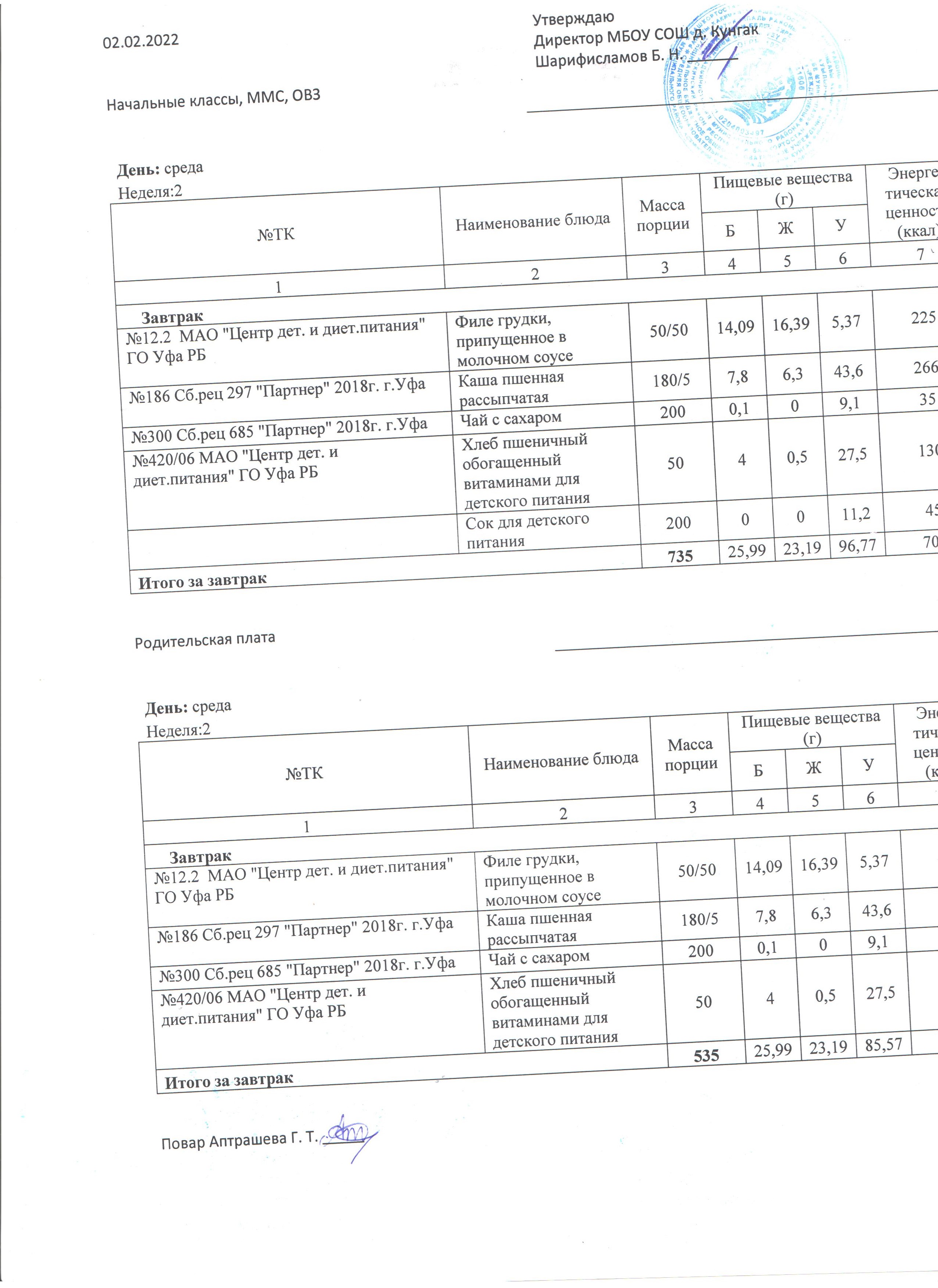 (Родительская плата)