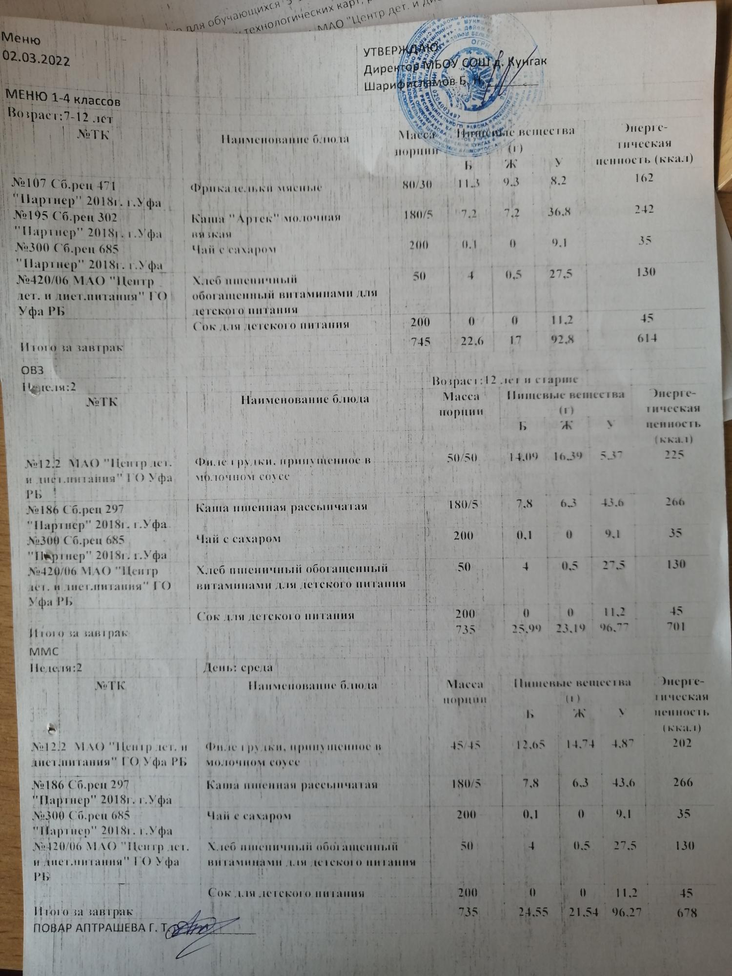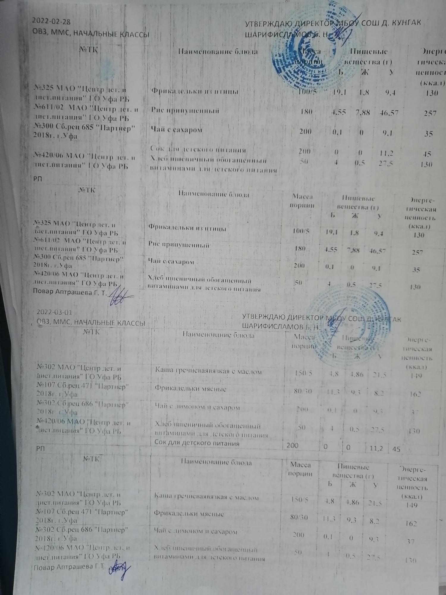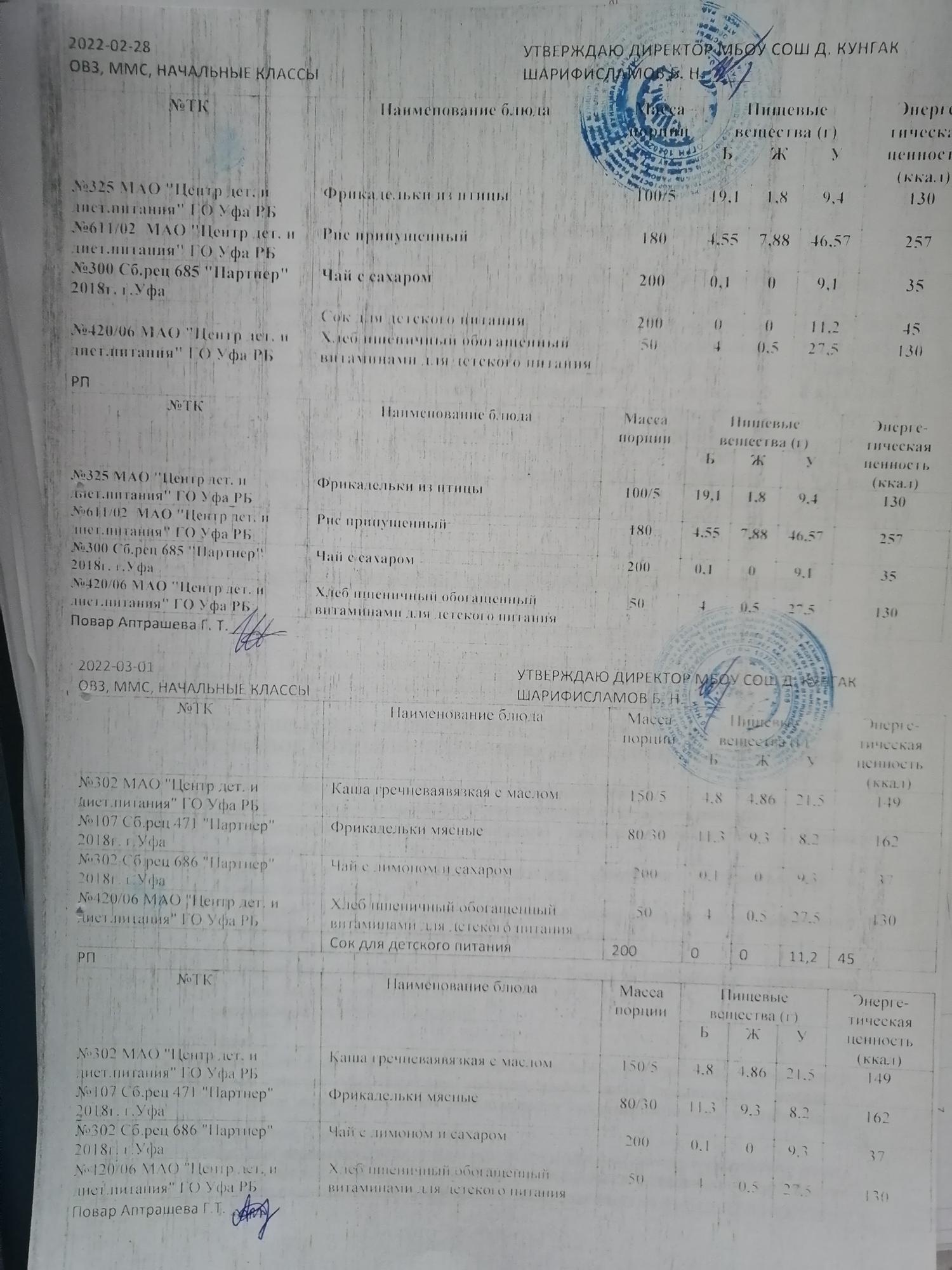 Меню ежедневного горячего питания