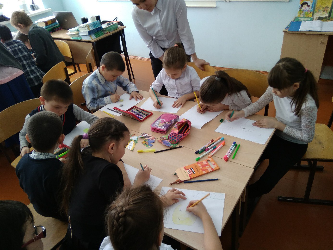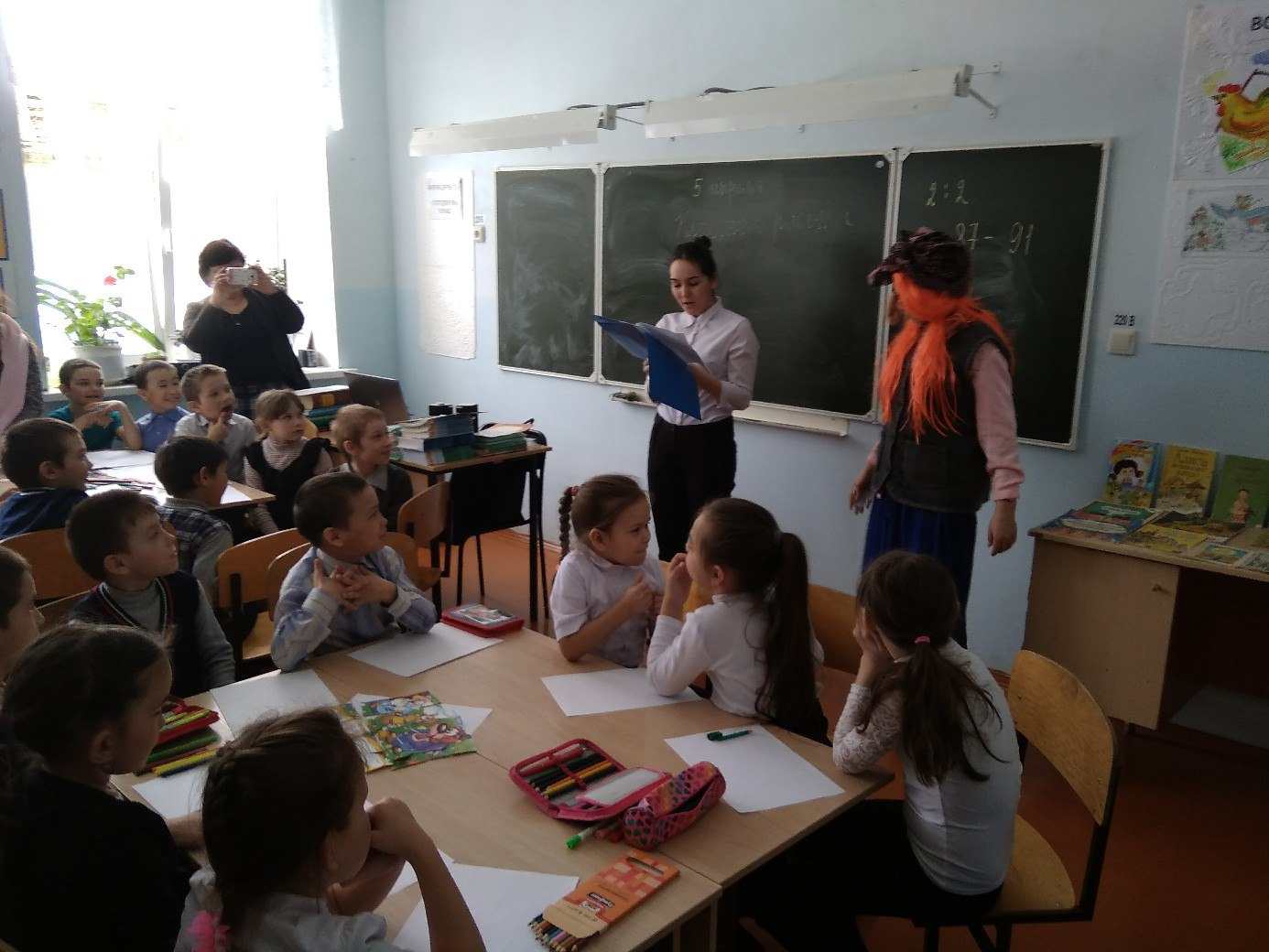 В нашей стране каждую весну, в конце марта во время школьных каникул начинается "Неделя детской книги". "Книжкина неделя" - это праздник, придуманный замечательным писателем Львом Кассилем. Первый раз его провели в 1943 году. Продолжался он всего 1 день, и участвовали только москвичи и ленинградцы. Но уже на следующий год длился неделю, и его стали устраивать во всех городах и деревнях нашей страны. И наша школа не исключение! В МБОУ ООШ д.Усть-Табаска ребятами 9 класса и организатором внеурочной деятельности Фамутдиновой Э.Ф. было проведено мероприятие "Книжкины именины!" . Писатель пришедший к ребятам в гости провел с ними игры, художник — провел конкурс рисунков "Иллюстрации к любимым сказкам", а заводная Баба Яга станцевала вместе с ребятами зажигательный танец! В конце праздника сказочные герои раздали всем сладости.